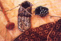 Malzemesi tamamen yün olan çoraplarımız beş şişle örülür. Renkli motiflerle süslenen bu çoraplar aynı zamanda bir duygunun da ifadesidir. Köylerimizde örülen çoraplar bir ihtiyacı karşılama unsuru olarak örülse bile okuma yazma bilmeyen, duygu ve düşüncesini sözle ifade edemeyen insanımızın ruh halini anlatan bir araçtır. Renklerin de ayrı bir ifadesi vardır. Beyaz renk sevgiyi, temizliği, kırmızı aşkı, muhabbeti, siyah üzüntüyü, ümitsizliği ifade eder. |